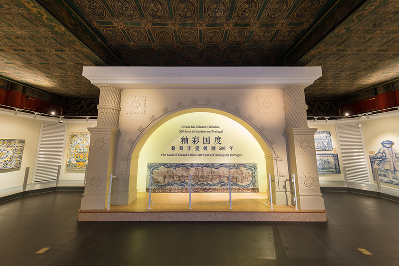 展览所在的永寿宫是紫禁城内廷西六宫之一,坐落在养心殿之后,庭院中的两棵海棠树栽种于清代,已有百年以上历史。“釉彩国度”展览在庭院深深、雕梁画栋的中国宫廷建筑中举办,别具风情。故宫博物院策展人选取里斯本热罗尼姆斯修道院的建筑结构作为展览主形象,将里斯本街道建筑的色调用作展览的基色,旨在将观众的思绪引导至浪漫都市里斯本,使观众一边欣赏美丽的瓷板画,一边仿佛徜徉在里斯本狭窄起伏的石子路上,耳边响起葡萄牙法朵民谣,追忆海上帝国葡萄牙曾经辉煌的岁月。