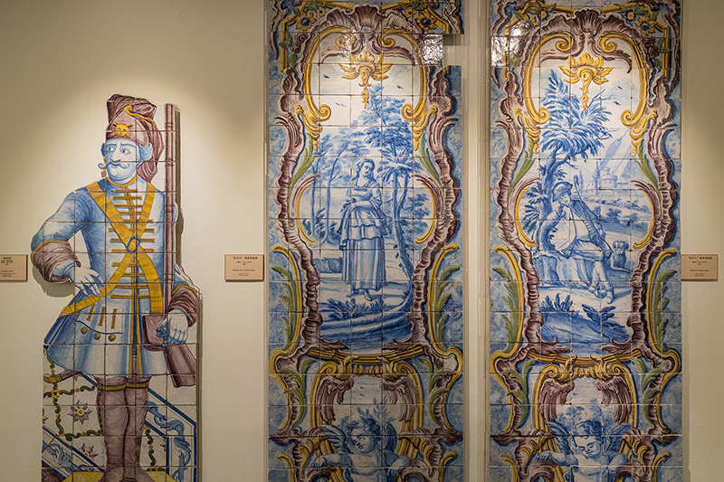 本次展览展品贯穿葡萄牙瓷板画500余年历史,通过不同时代的作品,观众不难看出瓷板画风格的变迁。这些作品颇具代表性,可谓异彩纷呈、精妙绝伦。以“裸展”方式呈现给观众,可为观众带来直观的视觉享受。16世纪早期瓷板画构图严谨、装饰性强,属于基督教艺术与伊斯兰艺术的混合体;17世纪瓷板画上的“狩猎图”,色彩搭配协调、画面干净明快,其中所绘人物,栩栩如生、活泼有趣,给人带来一种小清新的田园情调;18世纪的一幅作品,勾画出葡萄牙人想象中的中国人生活场景,把孩子抱在膝头的妇女、勤勉做着家务的夫妻、吹着笛子与女孩玩耍的妈妈等,组成一派和谐安宁的景象。到19世纪,工业革命极大改变了艺术风格,在20世纪和21世纪,葡萄牙瓷板画接受新艺术潮流,用抽象、夸张、变形的风格表达创作者的内心思想。尽管如此,葡萄牙瓷板画仍然兼具实用性和艺术性,它的装饰功能从未削减,反而因为符合当代审美趣味而更加富有生命力。
