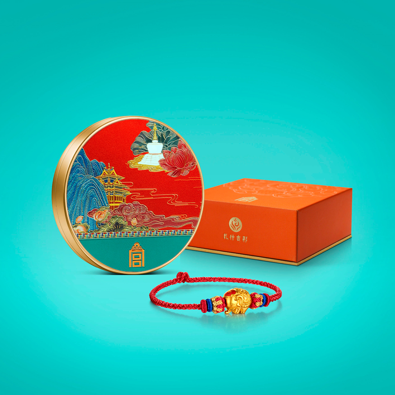 图2“和善吉祥”主题文创产品:故宫瑞兽之“吉象”:以扎什伦布寺“四瑞和睦图”中的吉象结合故宫御花园吉象为原型艺术演绎而来。吉象仪饰镌刻龙纹,象征福气与好运;头顶点缀如意造型红色珐琅,寓意吉祥如意;四足呈“四如意足”造型,寓意平安如意。