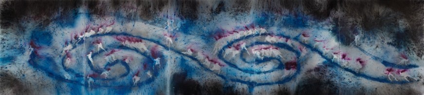 本次展览共展出蔡国强艺术作品180件,以对话东西方文明的创作形式,呈现艺术家近年“一个人的西方艺术史之旅”项目的精选作品,及以冬奥为主题和以紫禁城为灵感创作的新作。其中,《银河嬉冰》以故宫博物院馆藏《冰嬉图》为灵感,连接2022年北京冬奥会主题,呈现在银河中溜冰的想象。展出作品还包括《花瞬二》《梦游紫禁城》作品组。