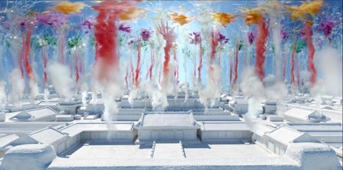 《梦游紫禁城》作品组由三件作品构成,展现艺术家所理解的紫禁城背后的美学格局和精神气魄,并首次在作品中使用虚拟现实技术(vr)展示烟花盛景。