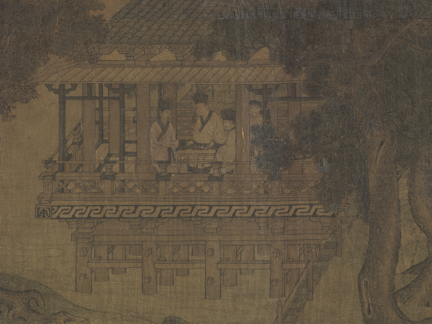 宋朝第八代皇帝徽宗赵佶(1082—1135)是才艺全面的艺术家,词赋、书画、声歌、吹弹诸艺无不精擅。作品描绘他与臣工蔡京等调琴赏乐的情景,较为写实地反映了彼时宫廷生活。