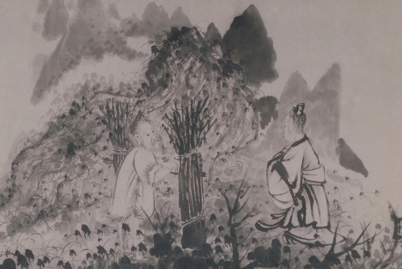 典出《汉书》及《史记》。秦末的东园公、甪(音路)里先生、绮里季、夏黄公皆八十有余,须眉皓白,人称“四皓”。他们为避秦暴政,隐居商山(今陕西商县东南)。汉高祖曾征召他们入朝,但皆不应命。后受高祖太子礼请,入朝佐助太子保全其位。画家常以此题表现那些年高隐逸而能俟时而动者。