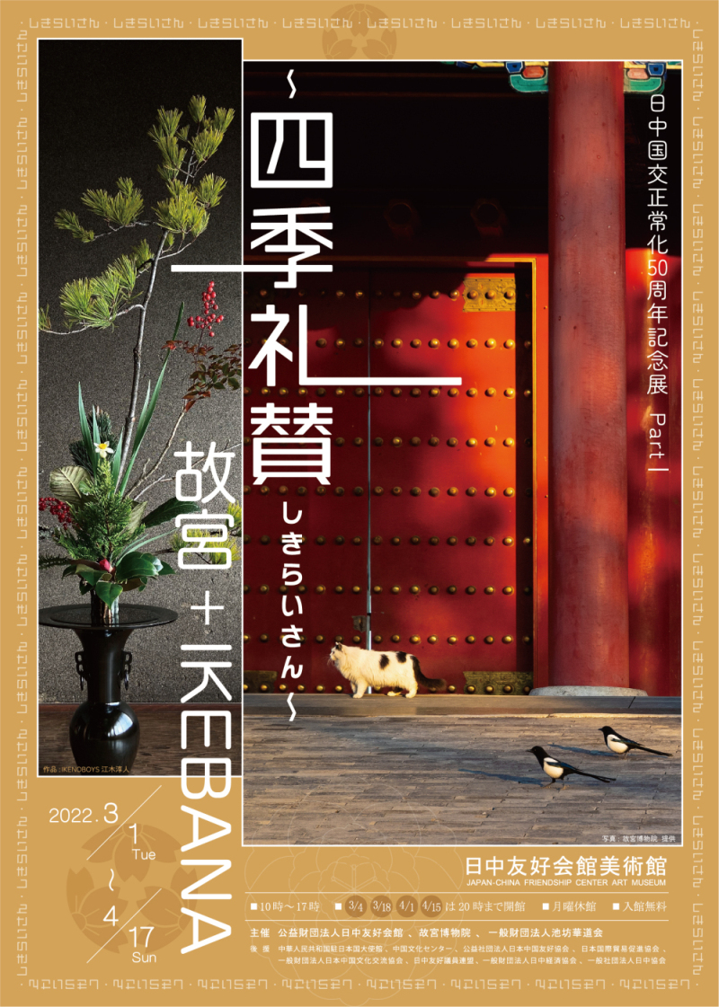 2022年3月1日,由故宫博物院、日中友好会馆和日本池坊花道会共同举办的“四季礼赞——中国故宫摄影和日本插花艺术展”在位于日本东京的日中友好会馆美术馆内开幕。