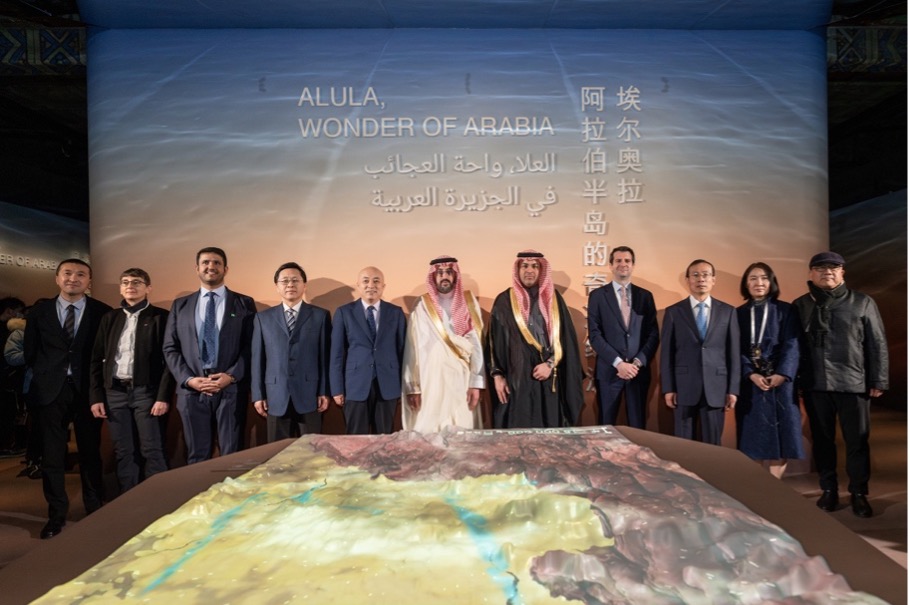 1月5日上午,展览开幕式在故宫博物院午门西雁翅楼展厅举行,故宫博物院副院长王跃工主持。埃尔奥拉皇家委员会首席传播官阿卜杜拉赫曼·阿尔特埃里(abdulrahman altrairi)、法国驻华使馆一等参赞高希孟(simond de galbert)和故宫博物院常务副院长娄玮分别致辞,随后故宫博物院院长王旭东、国家文物局副局长解冰、阿卜杜拉赫曼·阿尔特埃里先生和高希孟先生共同宣布展览开幕。外交部西亚北非司大使李连和,国家文物局副局长解冰,文化和旅游部国际交流与合作局(港澳台办公室)副局长许蓉,故宫博物院党委书记、副院长都海江,以及来自沙特阿拉伯、阿联酋、阿曼、巴勒斯坦、巴林、卡塔尔、科威特等国的驻华大使或使馆代表,法国驻沙特阿拉伯大使,埃尔奥拉皇家委员会代表团,法国埃尔奥拉发展署代表团,在京文化和博物馆领域领导和同仁等出席开幕式。