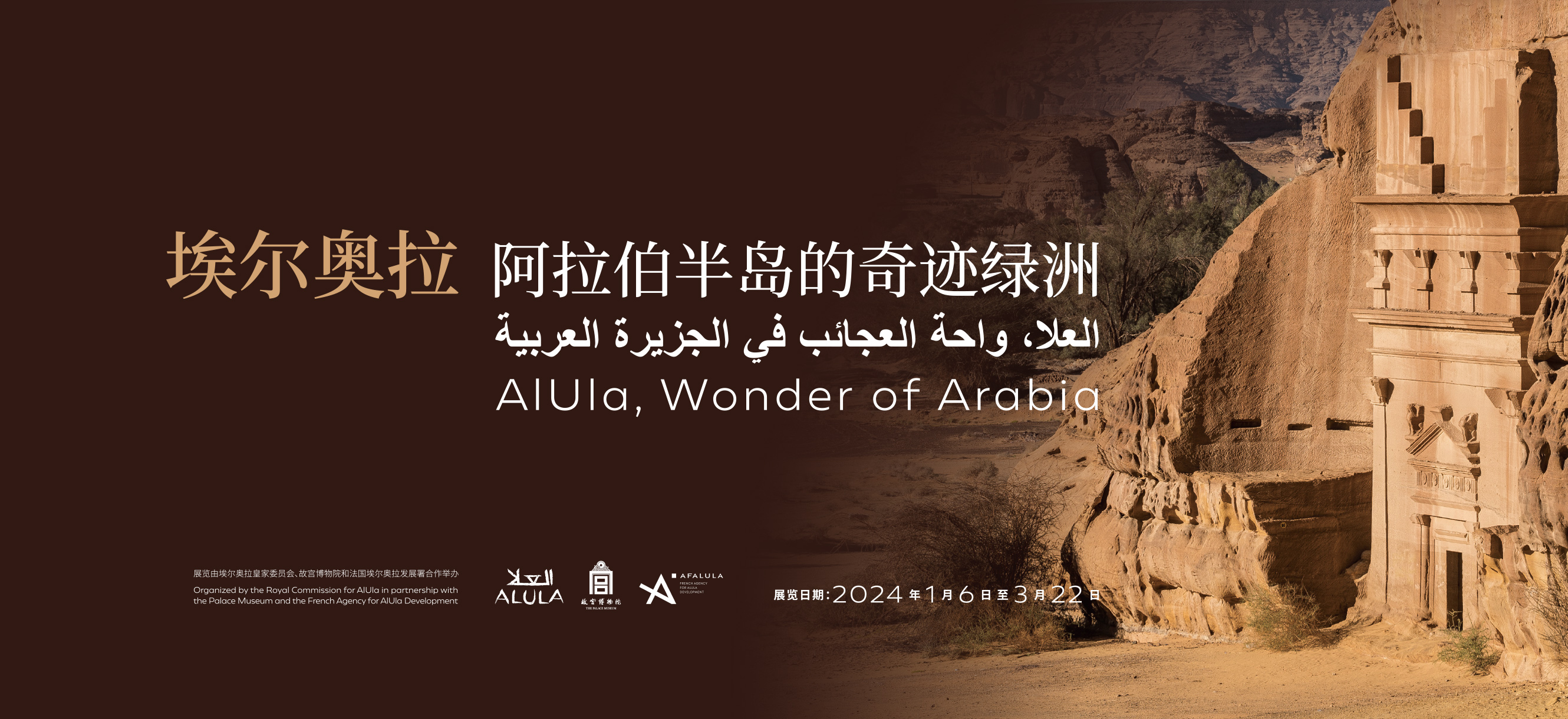 “埃尔奥拉——阿拉伯半岛的奇迹绿洲展”由沙特阿拉伯埃尔奥拉皇家委员会和故宫博物院合作举办,法国埃尔奥拉发展署提供支持,2024年1月6日至3月22日在午门西雁翅楼展厅对公众开放。