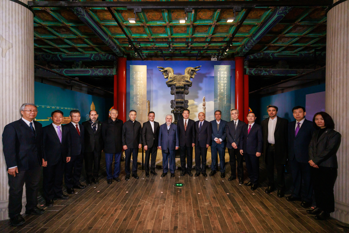 2024年1月11日,“历史之遇——中国与西亚古代文明交流展”和“璀璨波斯——伊朗文物精华展”联合开幕式在故宫博物院午门展厅举行。文化和旅游部副部长、国家文物局局长李群,故宫博物院院长王旭东,伊朗文化遗产、旅游和手工艺部副部长阿里·达拉比,伊朗驻华大使穆赫森·巴赫蒂亚尔,伊朗国家博物馆馆长杰布拉尔·诺坎德,中国农业银行董事长谷澍出席开幕式并致辞。中央广播电视总台副台长王晓真,上海合作组织秘书长张明,国际儒学联合会特别顾问辛旗,外交部西亚北非司大使吕健,中国历史研究院副院长、中国社会科学院考古研究所所长陈星灿,以及阿富汗、伊拉克、科威特、阿曼、塔吉克斯坦、叙利亚、印度等国驻华大使或使馆代表,国内重要文博和文化遗产机构相关负责人,从事西亚文化艺术等研究领域的重量级专家学者出席。故宫博物院常务副院长娄玮主持开幕仪式。