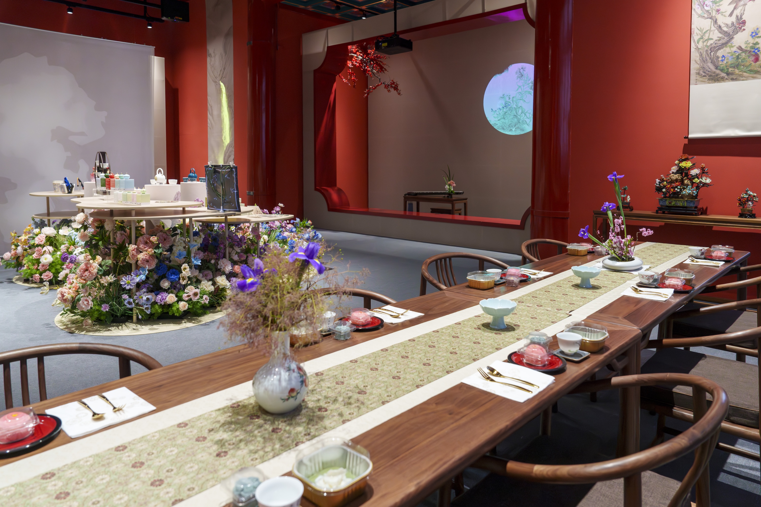 值得一提的是,本次展览还将午门东北崇楼开辟为文创展厅,通过抽象造境与郎世宁《花鸟图册》的融合,给观众营造出沉浸式文创展陈空间。设计灵感来源于康熙款五彩十二月花卉纹杯、绿色缎绣桂兔金皮球花纹花神衣、莫奈的《睡莲》、葛饰北斋的《桔梗与蜻蜓》以及亨利·弗莱彻的《十二月花令》等展品的数十款园林主题文创随之亮相,将传统文化与现代设计的创新巧妙融合。