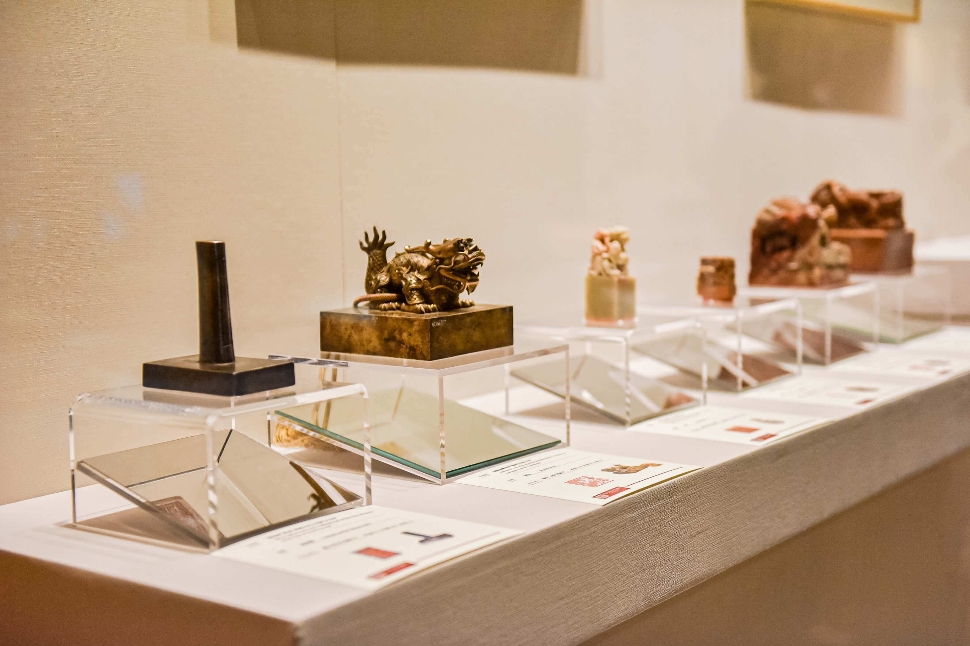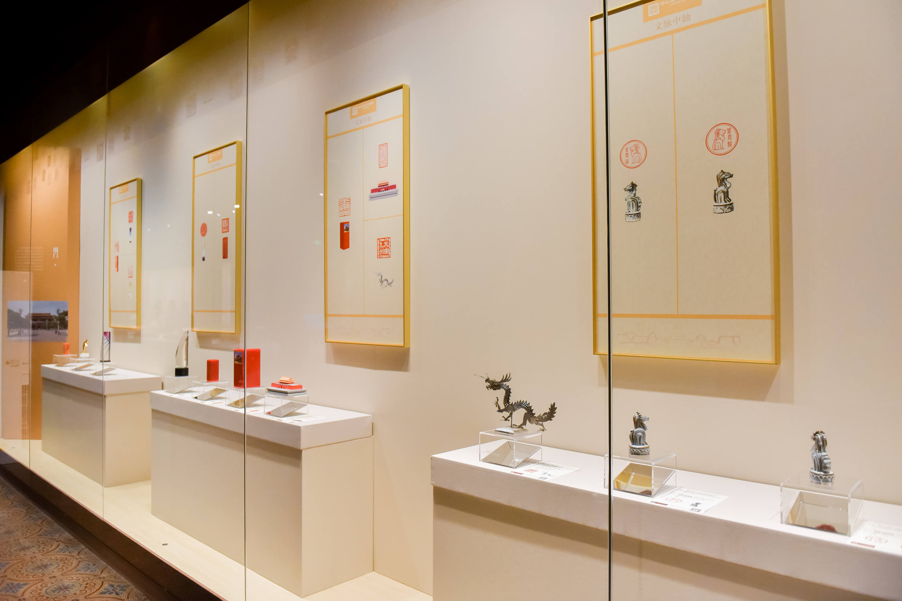 故宫玺印·紫禁回响:宫廷印章中的历史密码。精选20方故宫博物院收藏的玺印,包括清代二十五宝在内的政务用玺、帝后书画鉴藏玺及个人闲章。特别值得一提的是,此次藏品中更有近一半为2008年之后首次展出。通过宝玺印文与工艺的展示,弘扬传统文化,传承篆刻艺术。