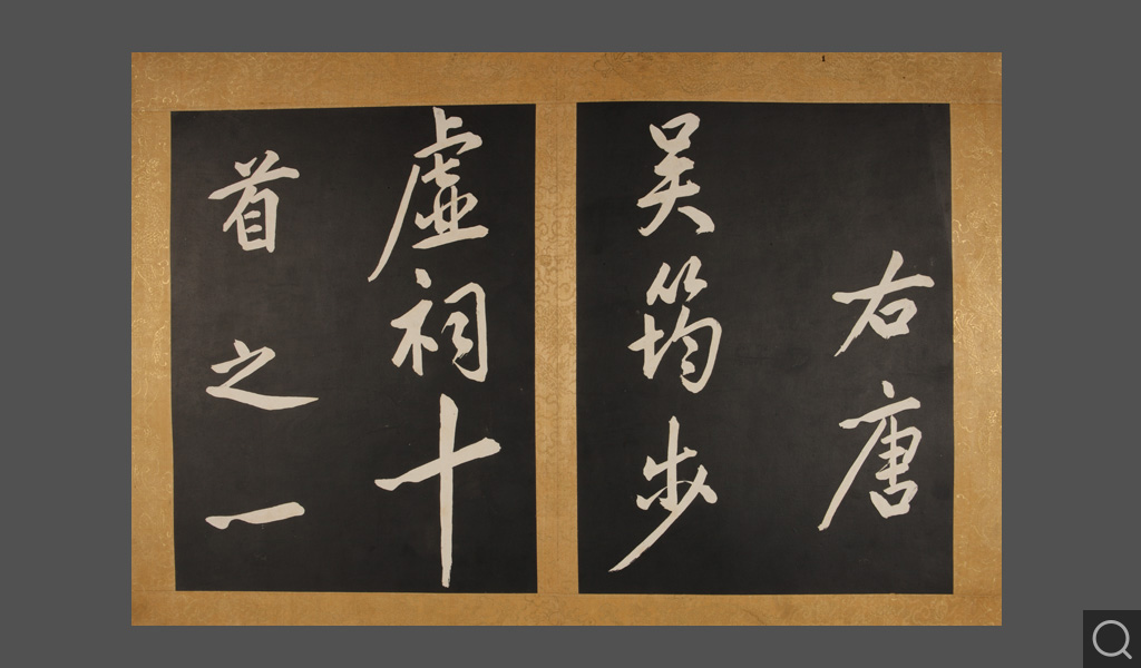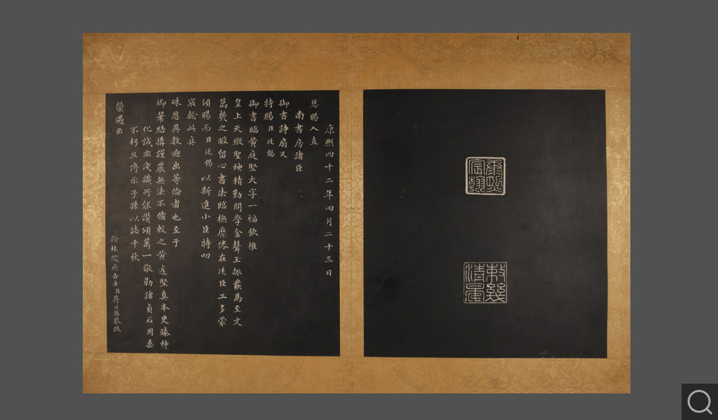 《石渠宝笈》著录名称:圣祖仁皇帝御临黄庭坚书唐吴筠步虚词墨刻