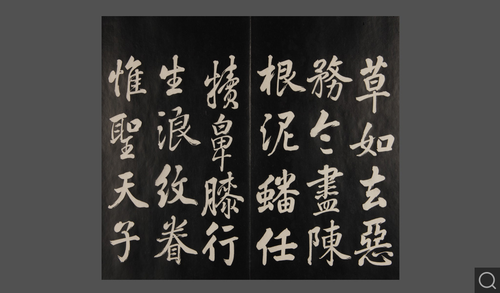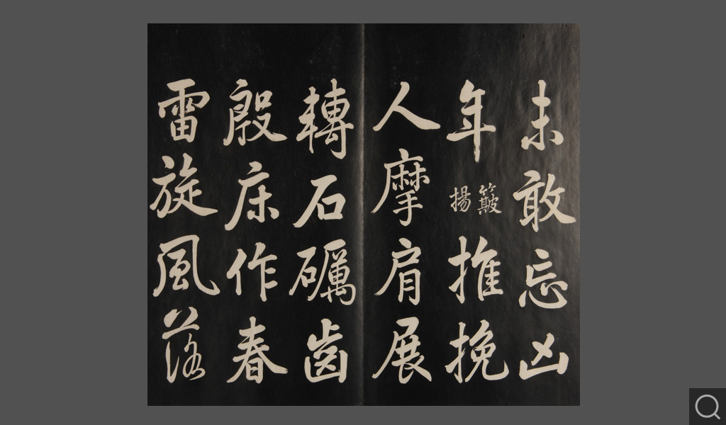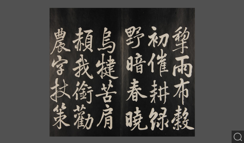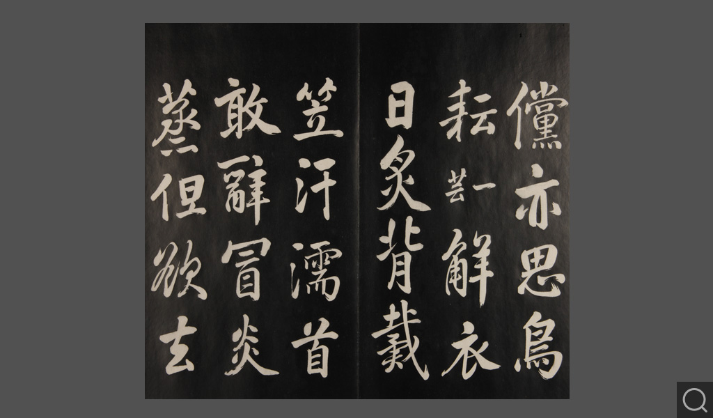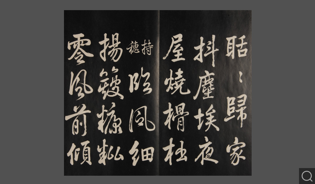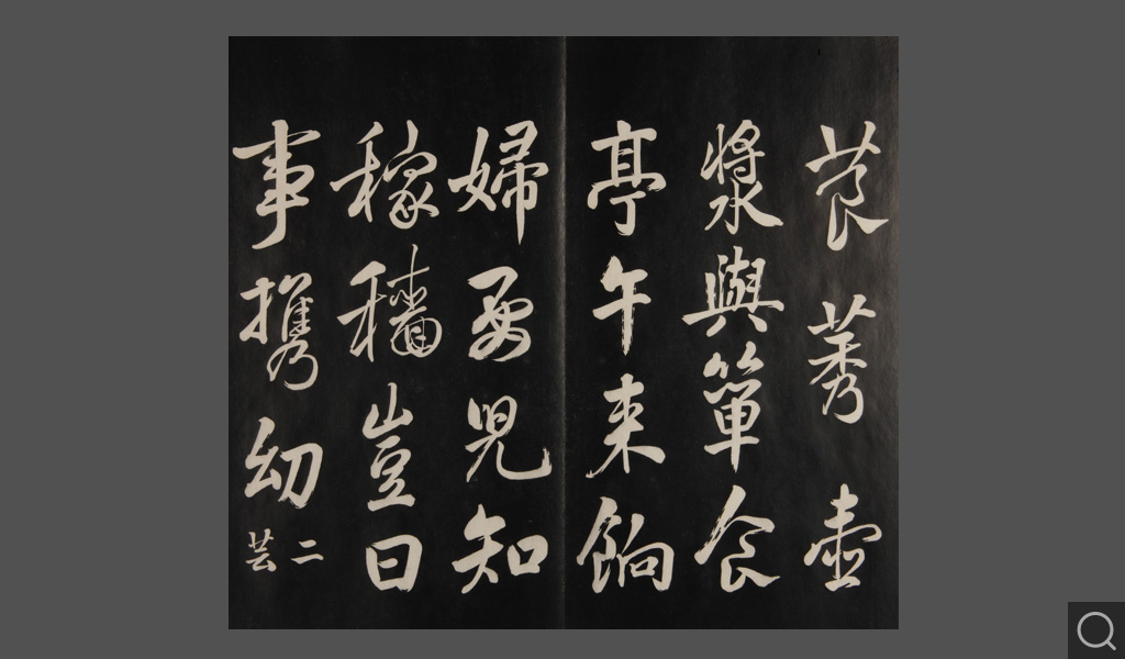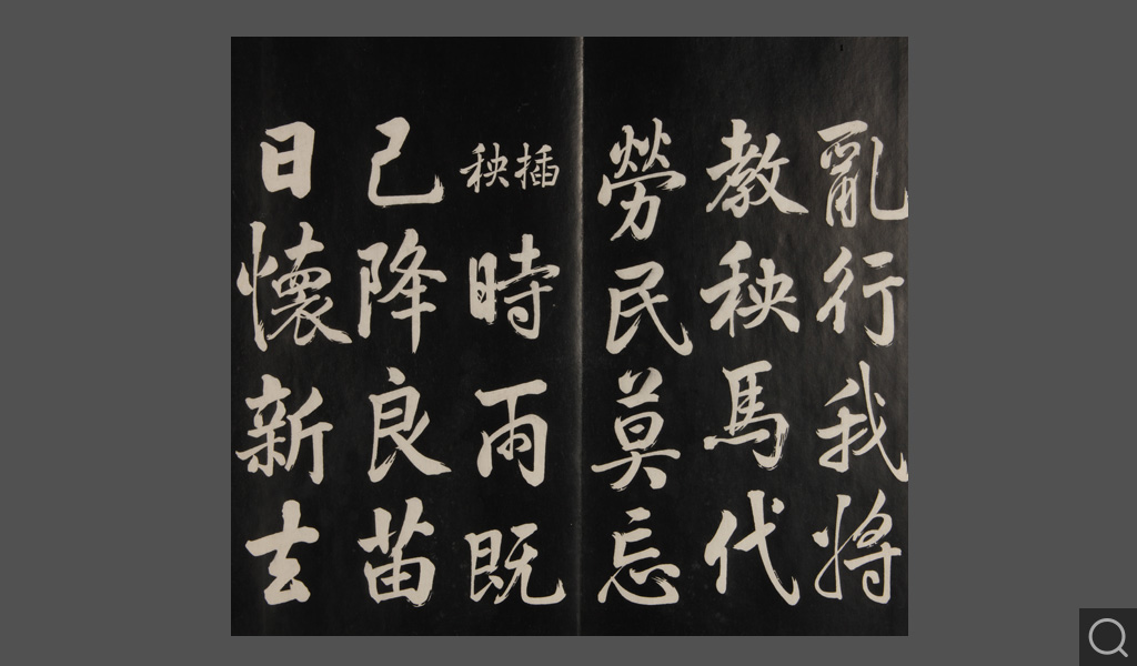 是件为清乾隆二十二年(一七五七)摹刻,帖收大臣张照书。该帖第一、二、三册收张照恭书御制诗文,第四、五、六、七、八册收张照临晋、唐、宋、元、明历代名家书,第九、十册收张照自书诗文。