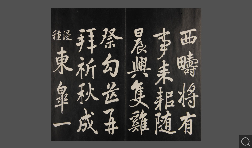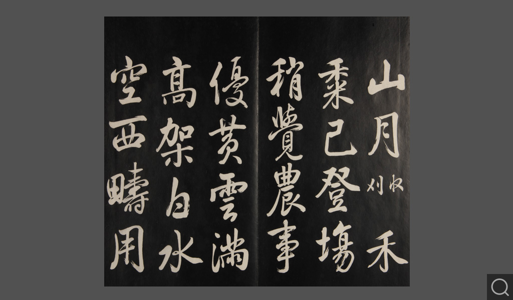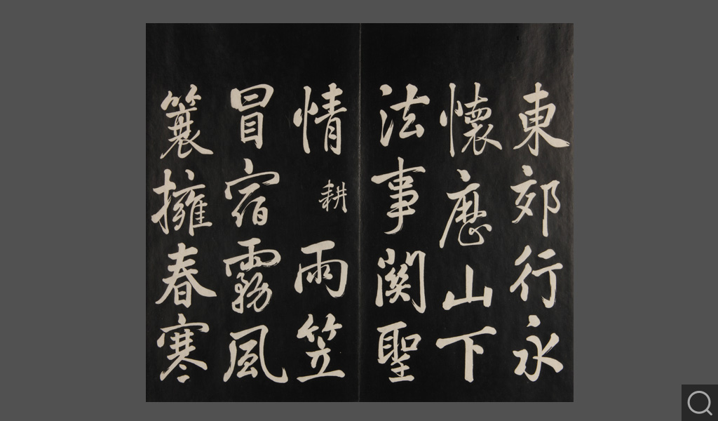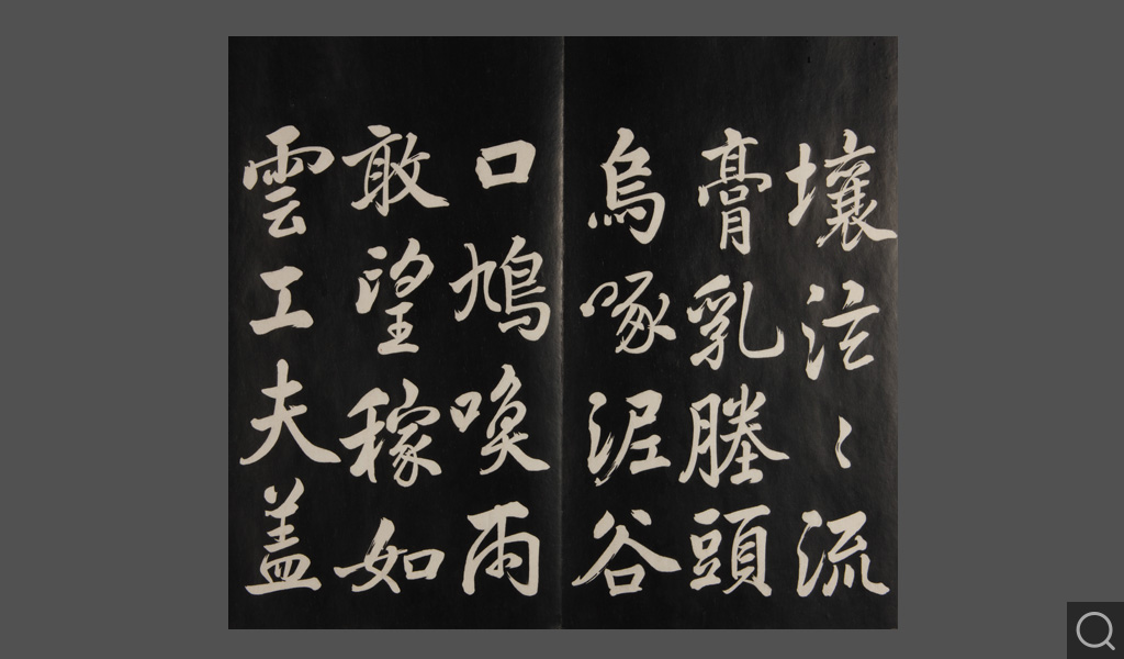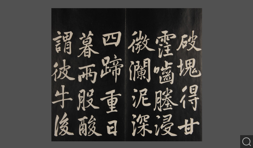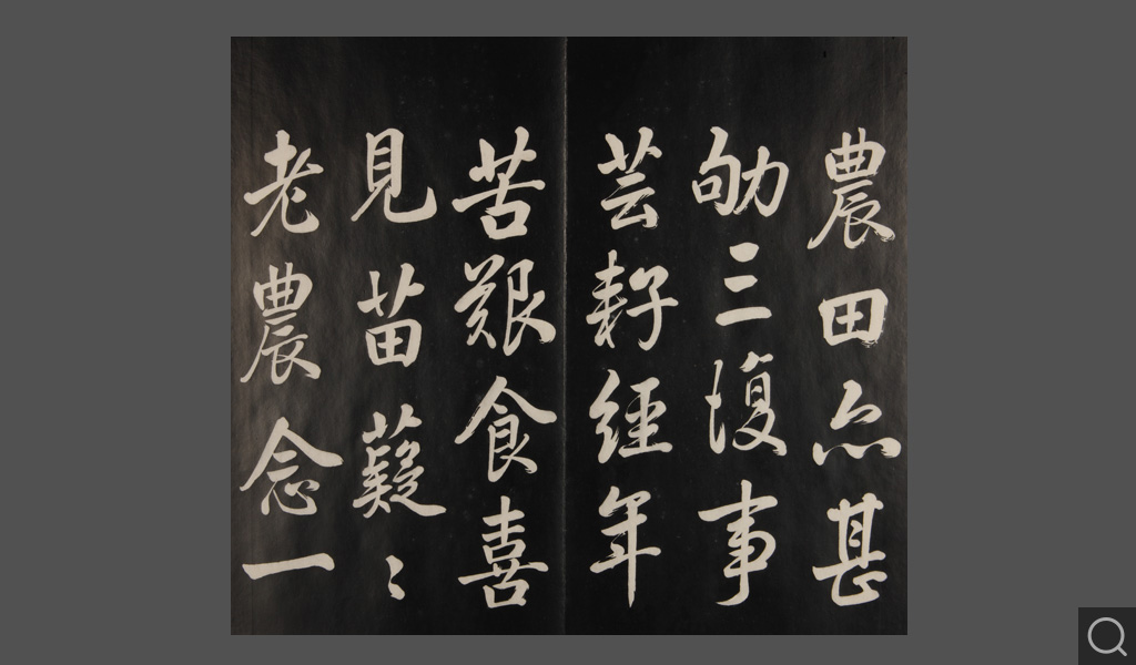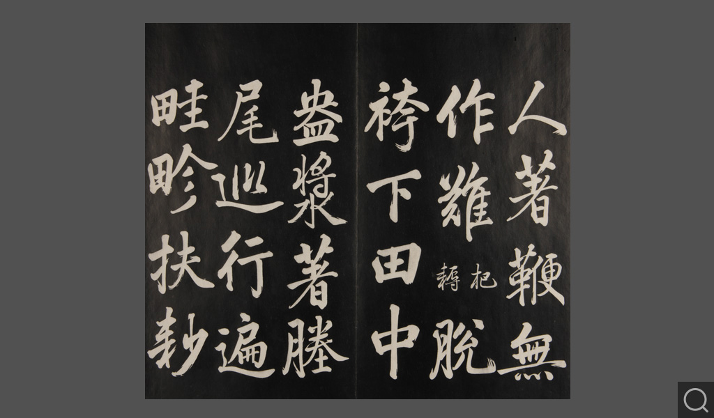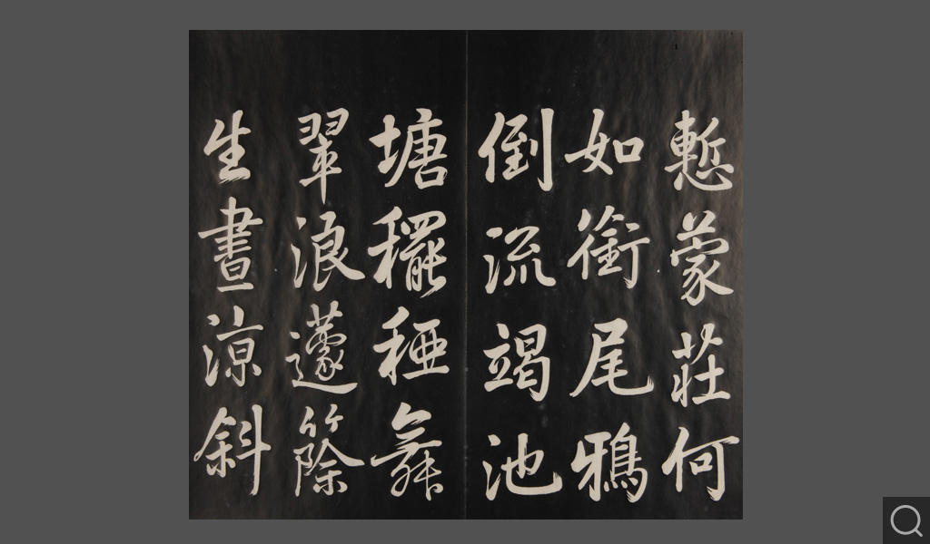 是件为清乾隆二十二年(一七五七)摹刻,帖收大臣张照书。该帖第一、二、三册收张照恭书御制诗文,第四、五、六、七、八册收张照临晋、唐、宋、元、明历代名家书,第九、十册收张照自书诗文。